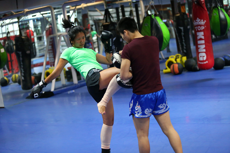 被汗水浸透的運動衣,厚重的拳擊手套,有點小肌肉的臂膀,搏擊中高高束起的辮子,都會讓人的心為之柔軟,同時又被深深地震撼。一拳一腿之間,感受著自己的呼吸,身體和心靈一起升華,一個自由的身體才會可能有心靈的自由。
